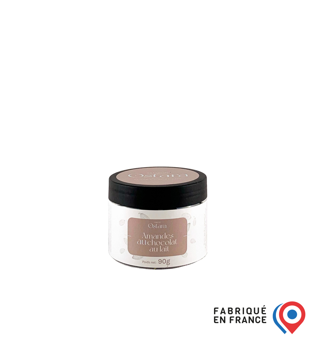 Savourez de succulentes amandes enrobées de chocolat au lait.