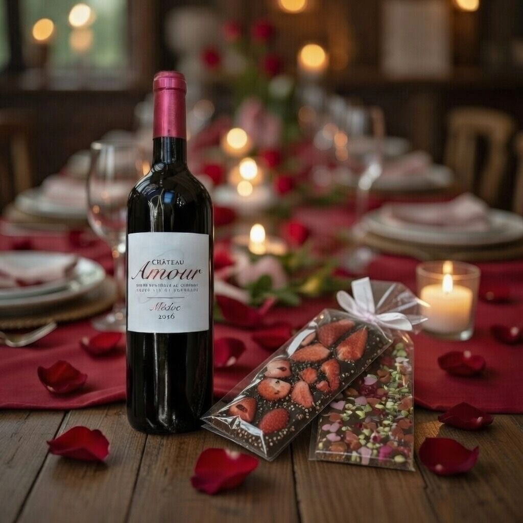 Imaginez ce moment où le cadeau est découvert. Le vin est ouvert, le chocolat partagé. Les saveurs se répondent, la discussion s’installe, l’atmosphère devient douce et complice.