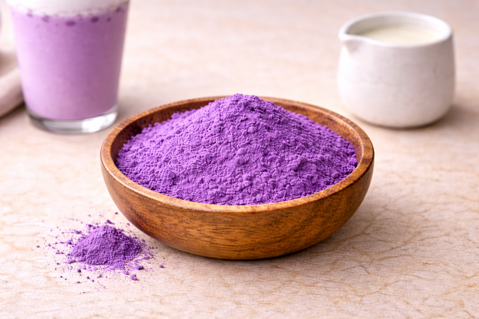Ube : 1 à 2 cuillères selon l’intensité souhaitée pour vos lattes, smoothies ou desserts