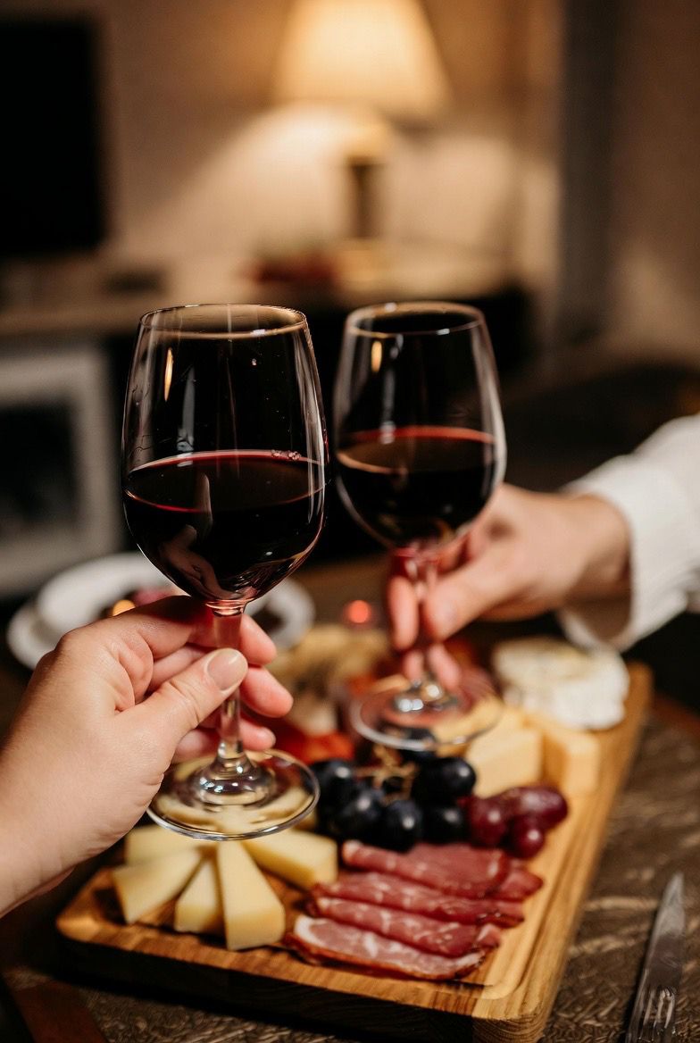 Plaisir gourmand : Un plateau de charcuterie accompagné d’une bouteille de vin rouge